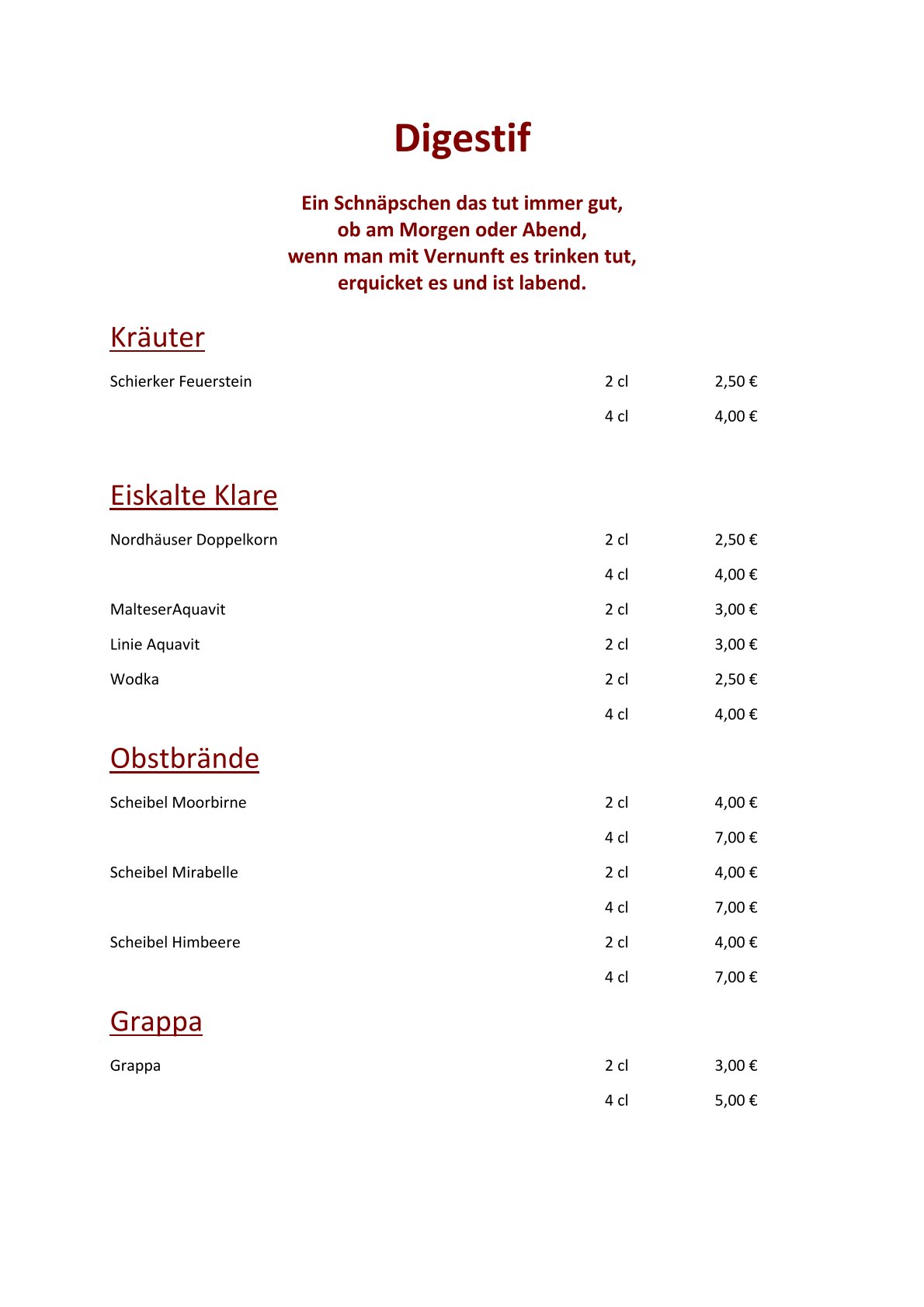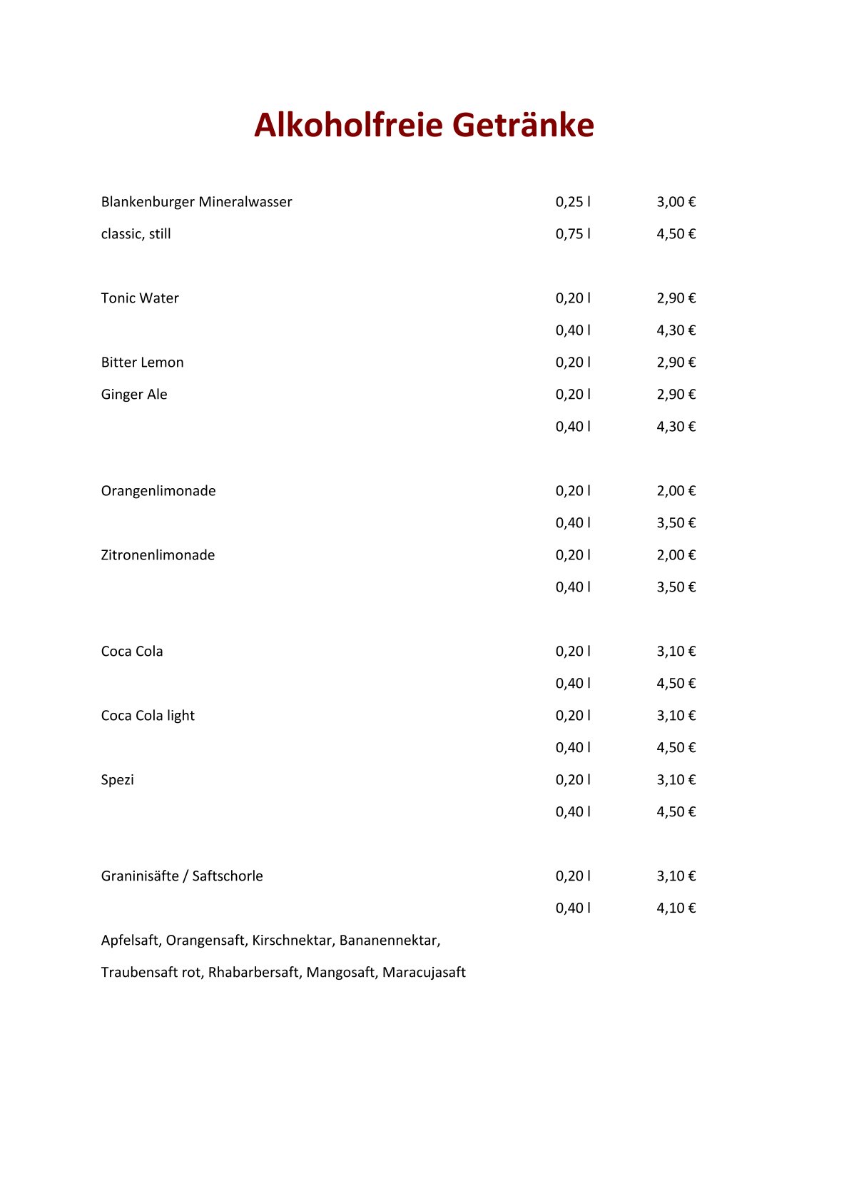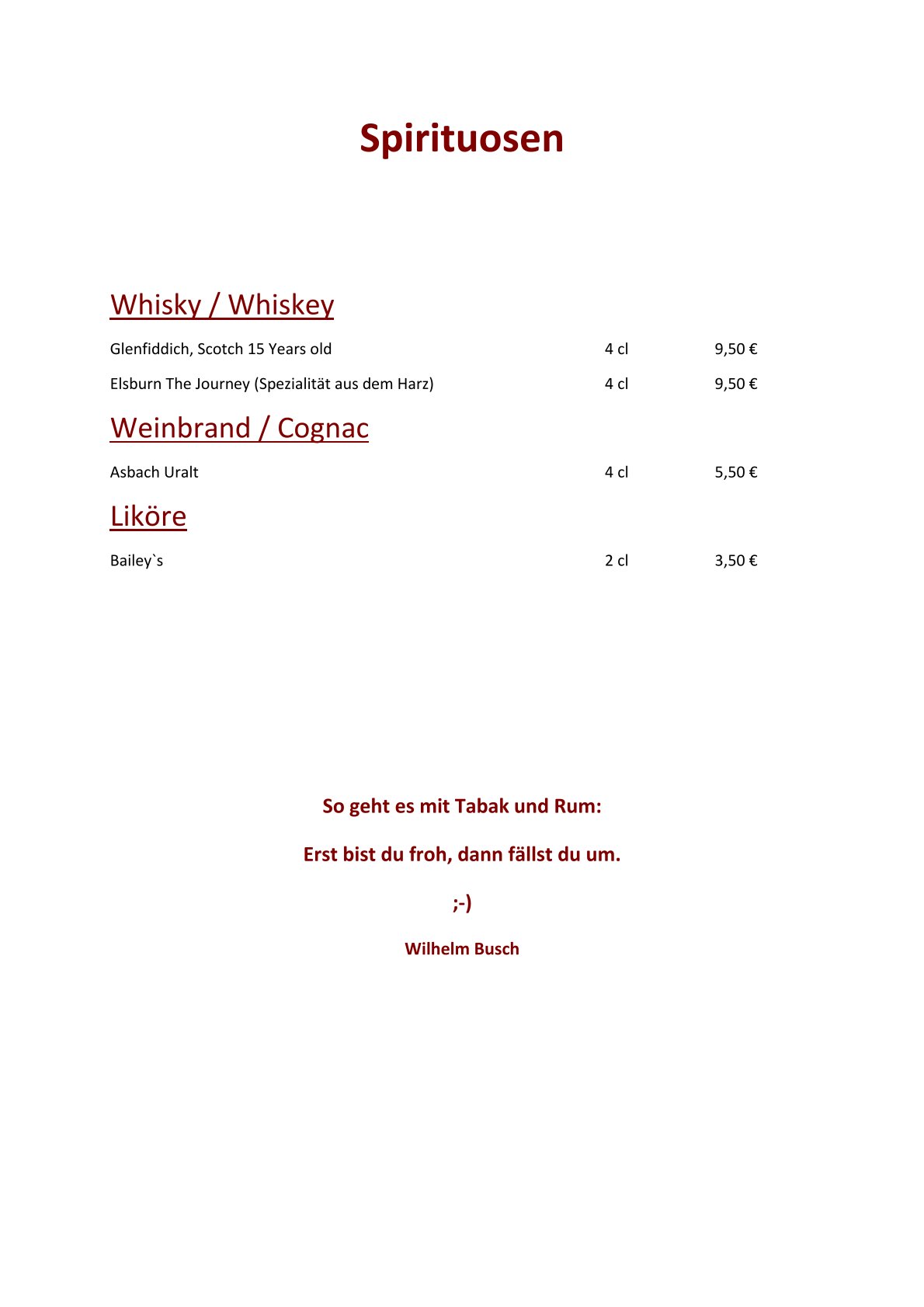 Getränkekarte