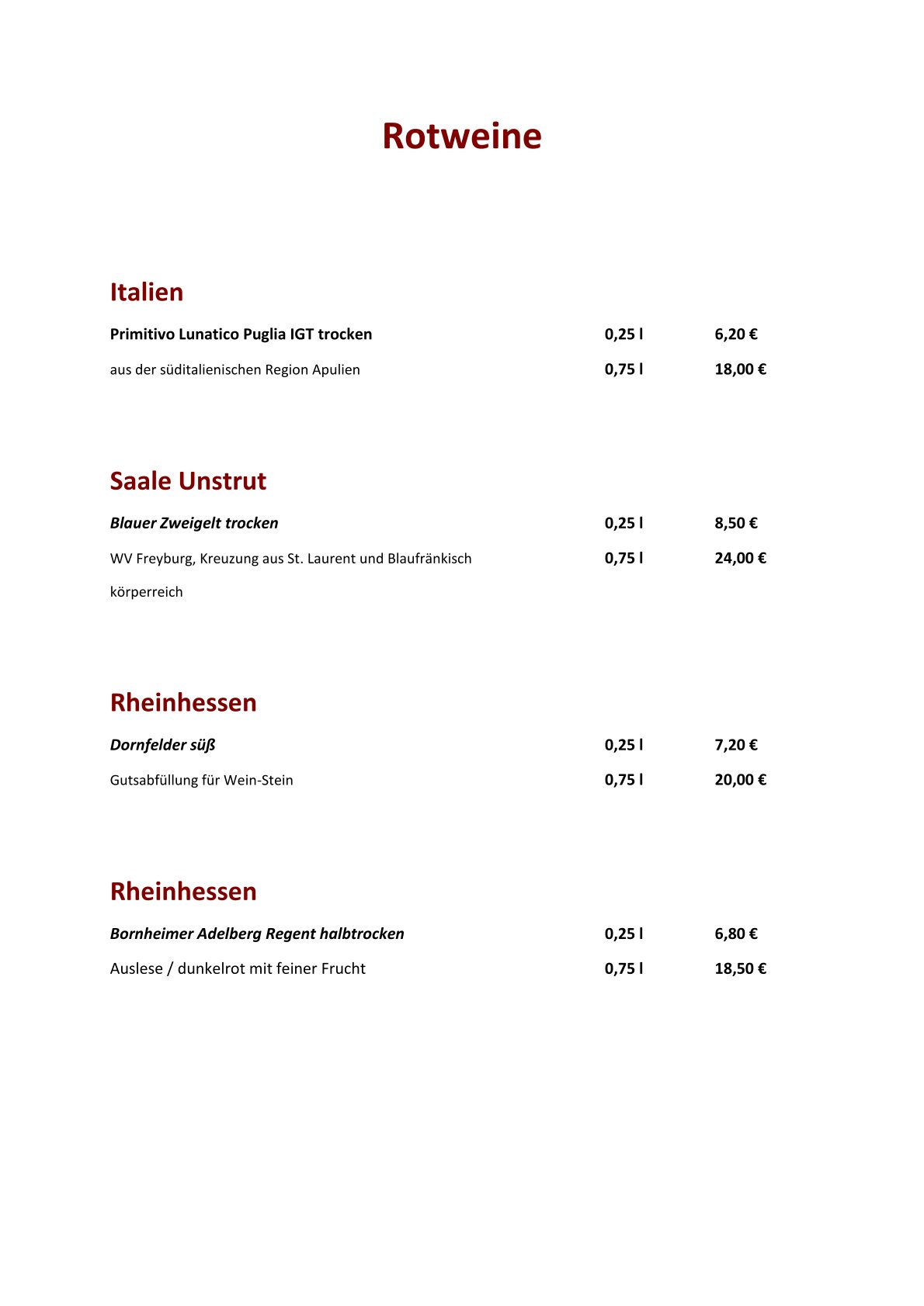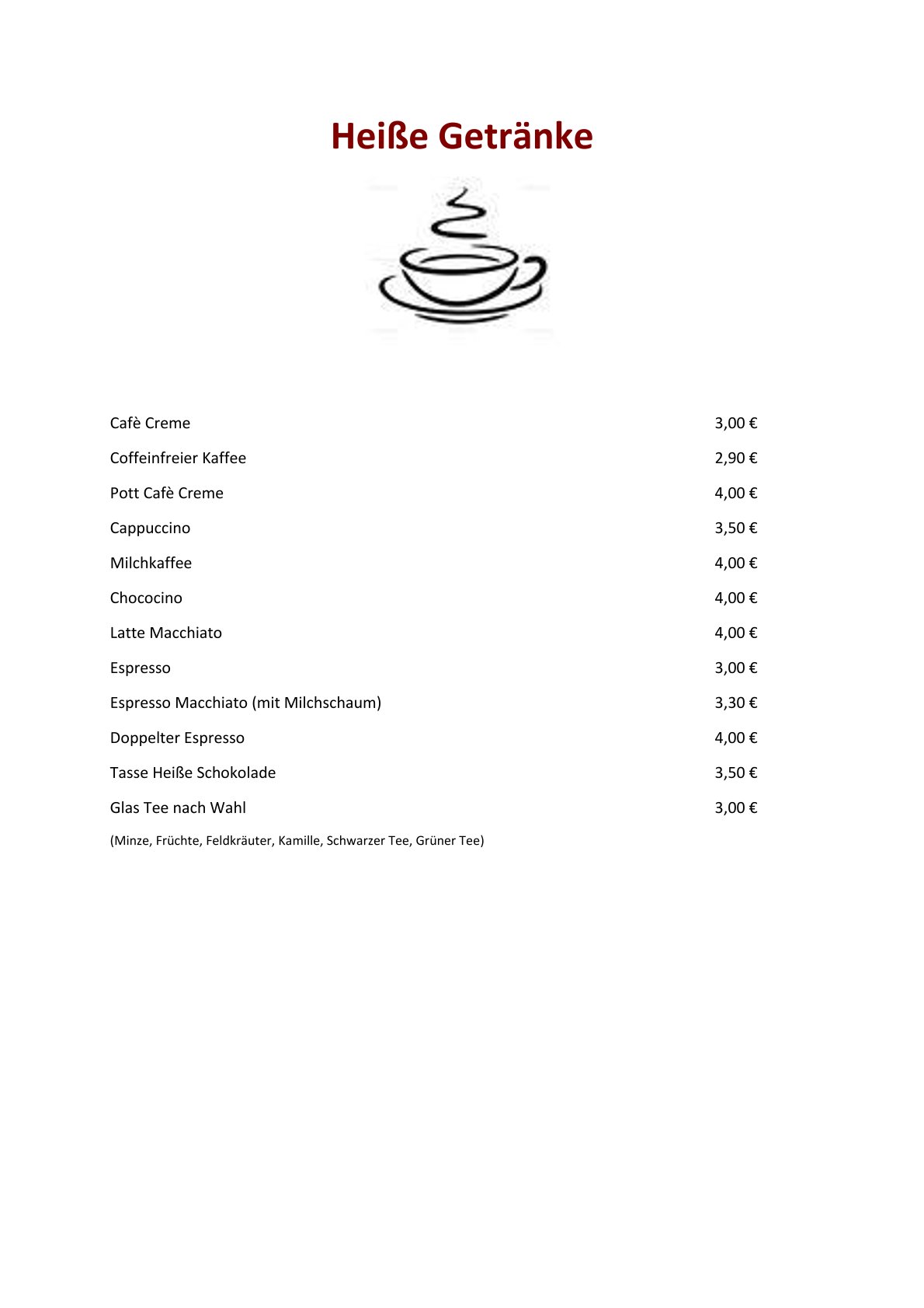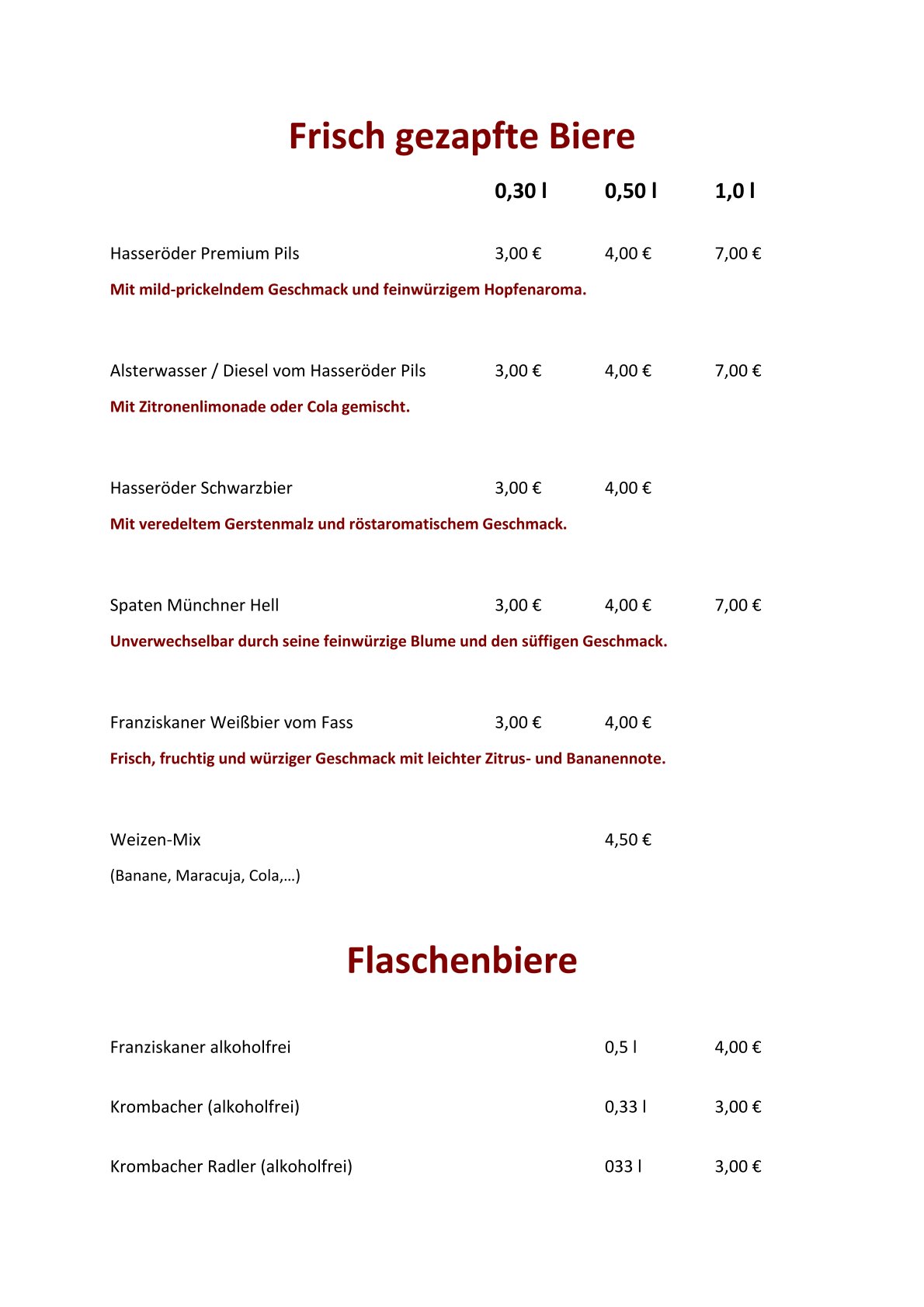 Getränkekarte